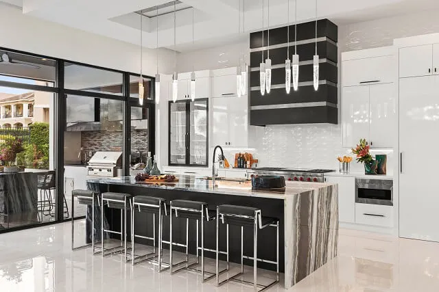 Luxury stone, flawlessly integrated into kitchens, baths, and architectural spaces, both commercial and residential.